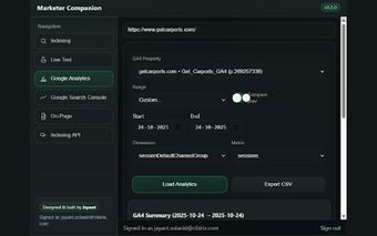 Marketer Companion to darmowy dodatek do przeglądarki Chrome, który wspiera specjalistów SEO i marketerów w analizie wydajności stron. Umożliwia inspekcję adresów URL w Google Search Console, przeprowadzanie testów PageSpeed oraz monitorowanie wyników w Google Analytics 4, wszystko w jednym, przejrzystym interfejsie. Narzędzie pozwala na szybki dostęp do informacji o indeksowaniu, wynikach wydajności oraz audytach on-page bez potrzeby korzystania z API.